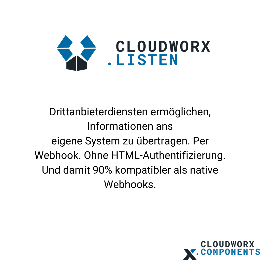 Mit cloudworx.listen sind Webhooks aber ganz ohne HTTPS-Authentifizierung möglich.